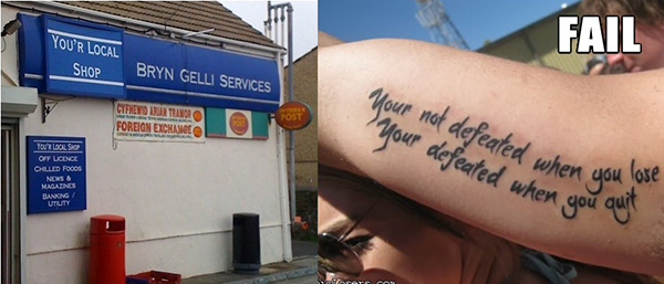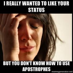 Apostrophes are key to good communication, and indicate possession. However, you don’t want to possess a published post (or worse, a tattoo) that shows the results of failed apostrophe use, so be sure that you proofread your messages to avoid LOL moments from your friends!